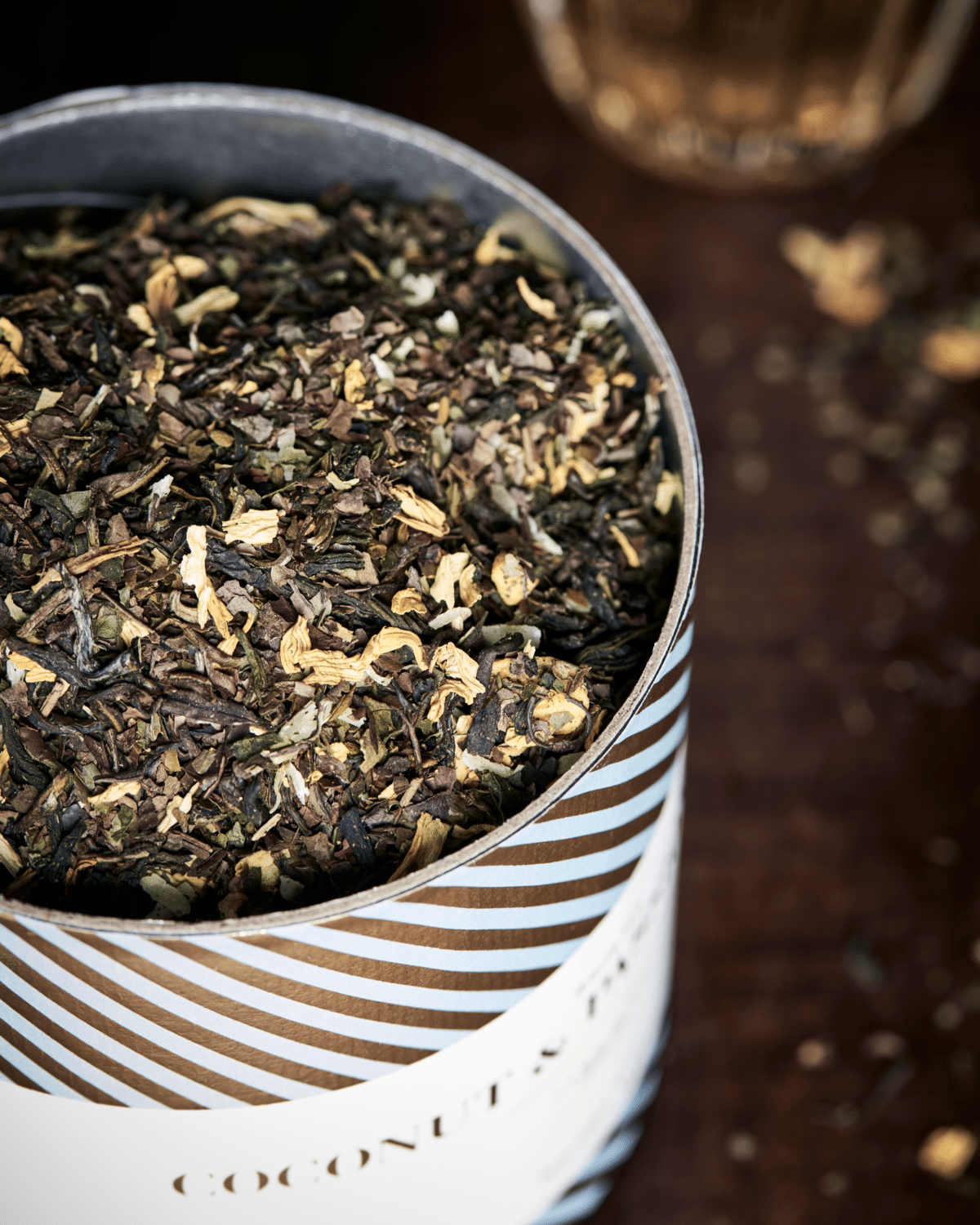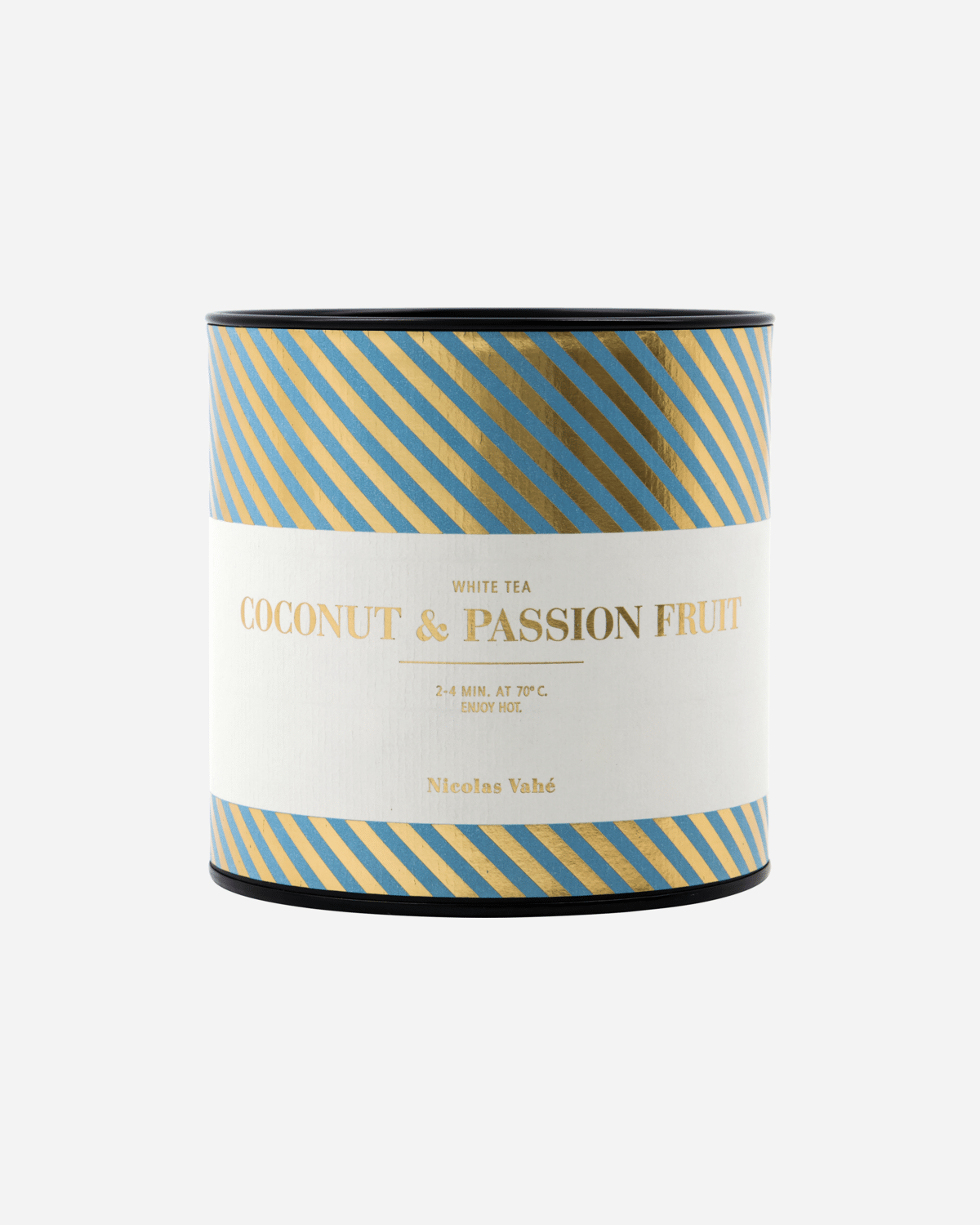 Teen er sammensat af hvide teblade, tilsat fine kokosflager og passionsfrugtgranulat, som tilsammen skaber en rund, dyb og forfriskende smagsprofil. Den naturlige sødme fra frugten og den cremede kokos giver en harmonisk og blød kop te, som er lige så velegnet til en stille stund som til gæstebud.