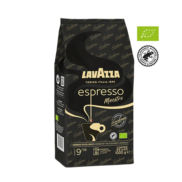 Lavazza kaffebønner – Espresso Maestro økologisk – med noter af tørret frugt % chokolade.