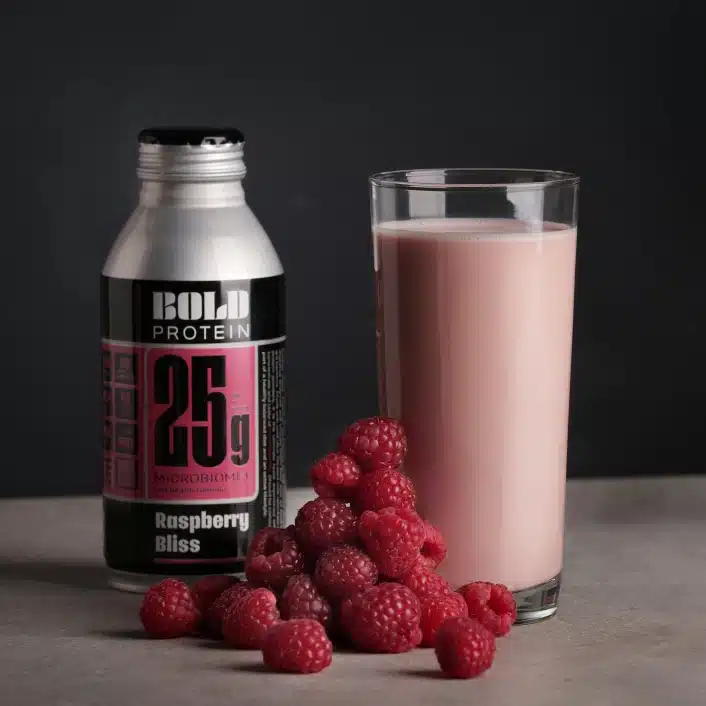BOLD Protein Raspberry Bliss er udviklet til dig, der ønsker mere end bare protein. Med 25 g protein fra udvalgte proteinkilder kombineret med kostfibre, der støtter en sund tarmfunktion, får du en velsmagende og funktionel drik til hverdagen.